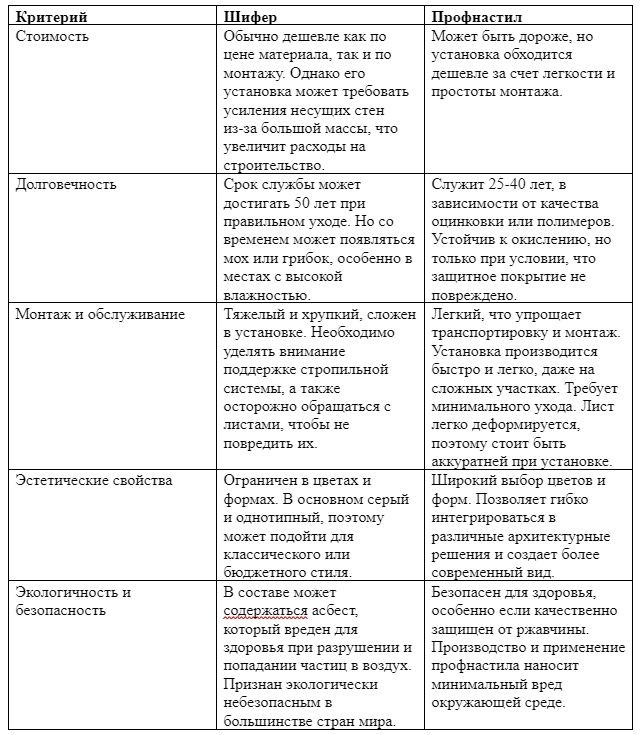 Если вы выбираете, чем покрывать крышу – шифером или профнастилом, воспользуйтесь нашей сравнительной таблицей.